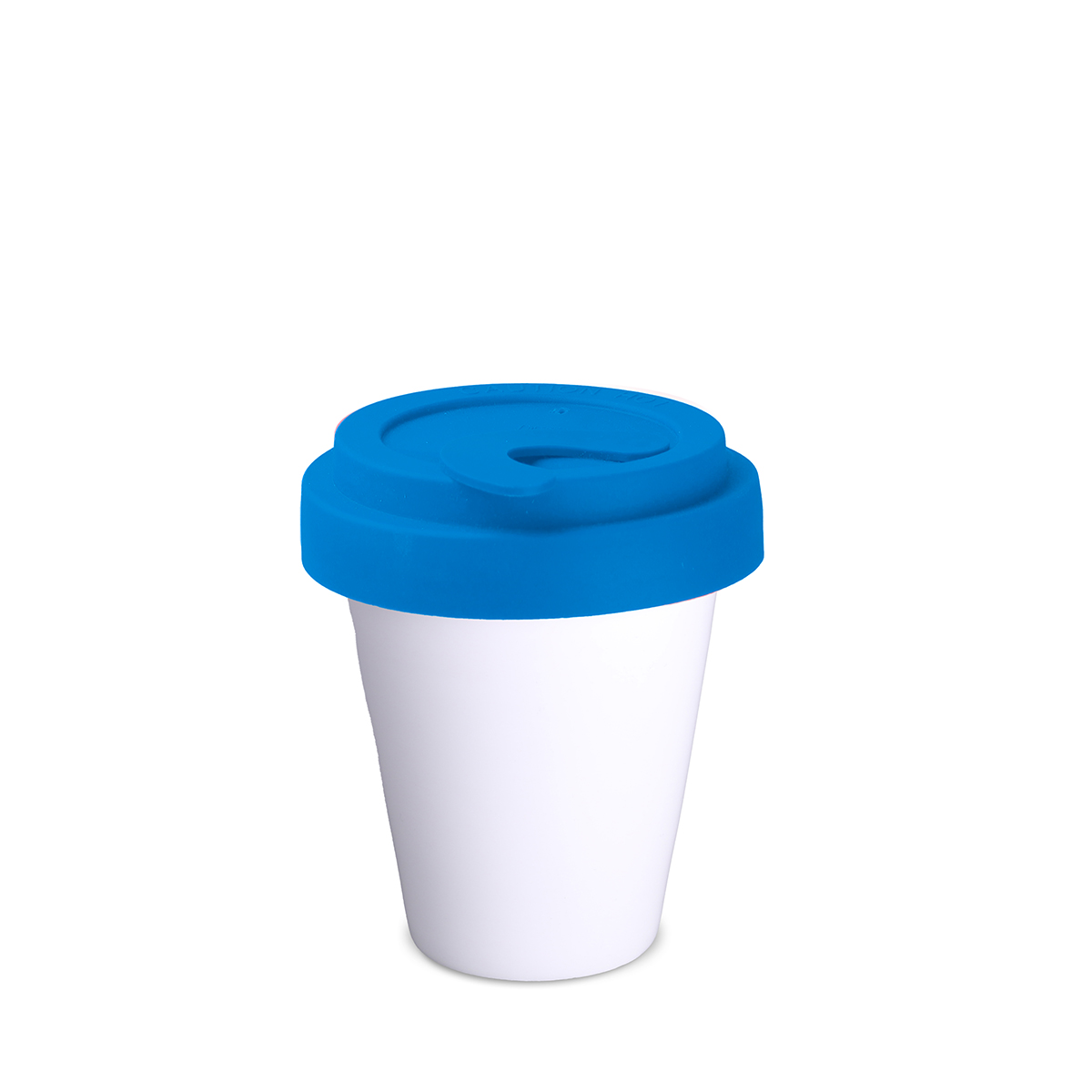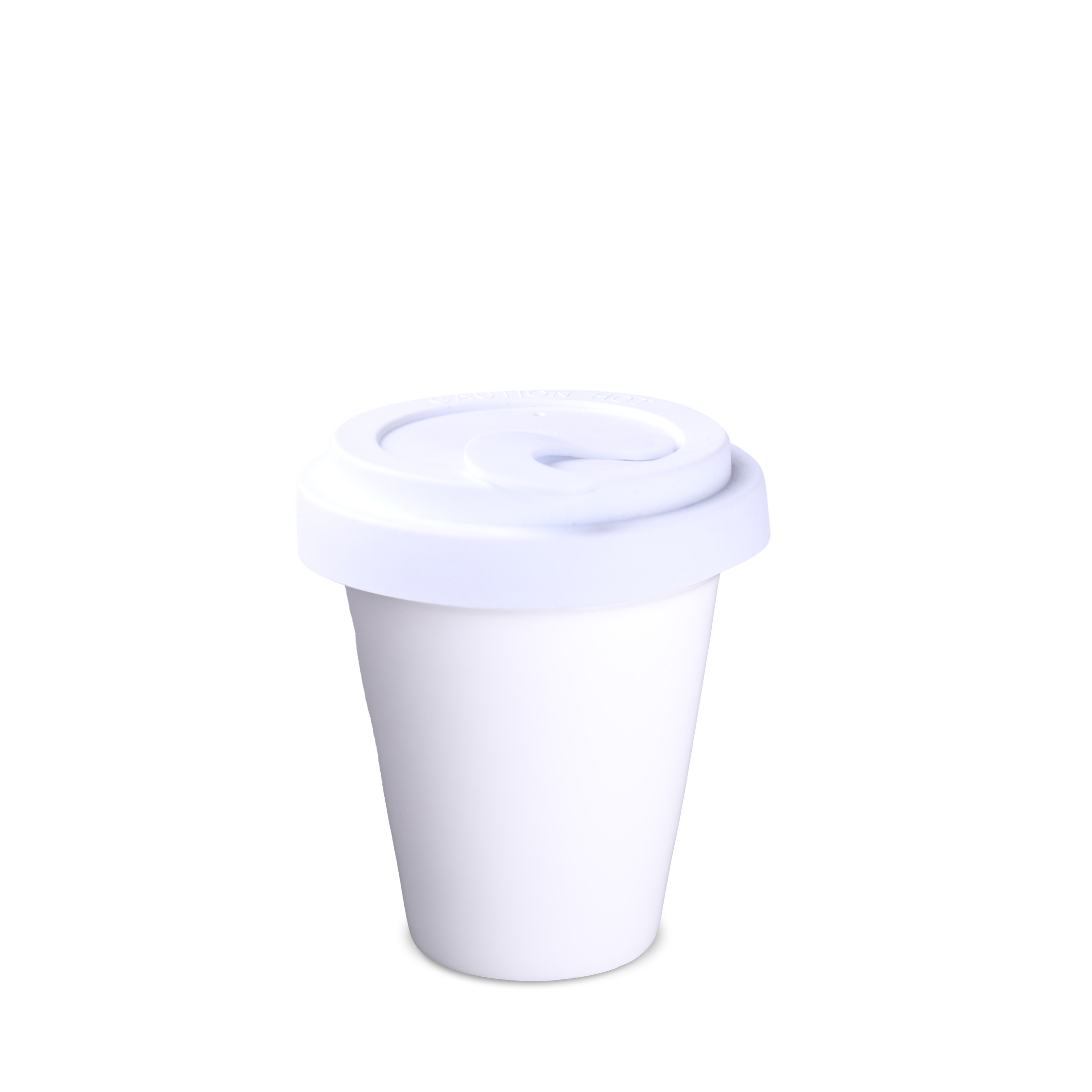A practical porcelain mug with a polymer lid and a stopper to prevent accidental spillage. Thanks to its rare double-walled porcelain structure, this mug offers enhanced thermal insulation. The mug body is available in white and satin black. The lid is available in the following colors: white, orange 021C, Cool Gray 7, navy blue 294C, brown 4695C, black, pink 4064C, blue 2144C, eucalyptus 5493C, desert sand 2310C.